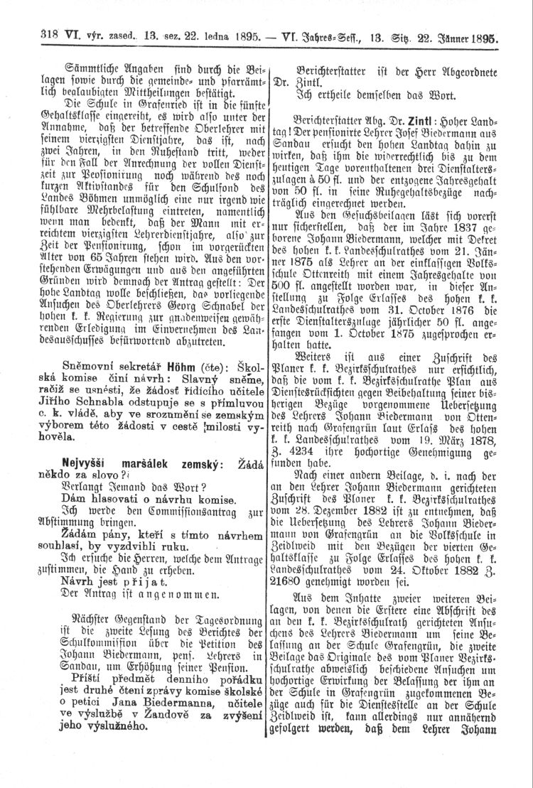 Úterý 22. ledna 1895