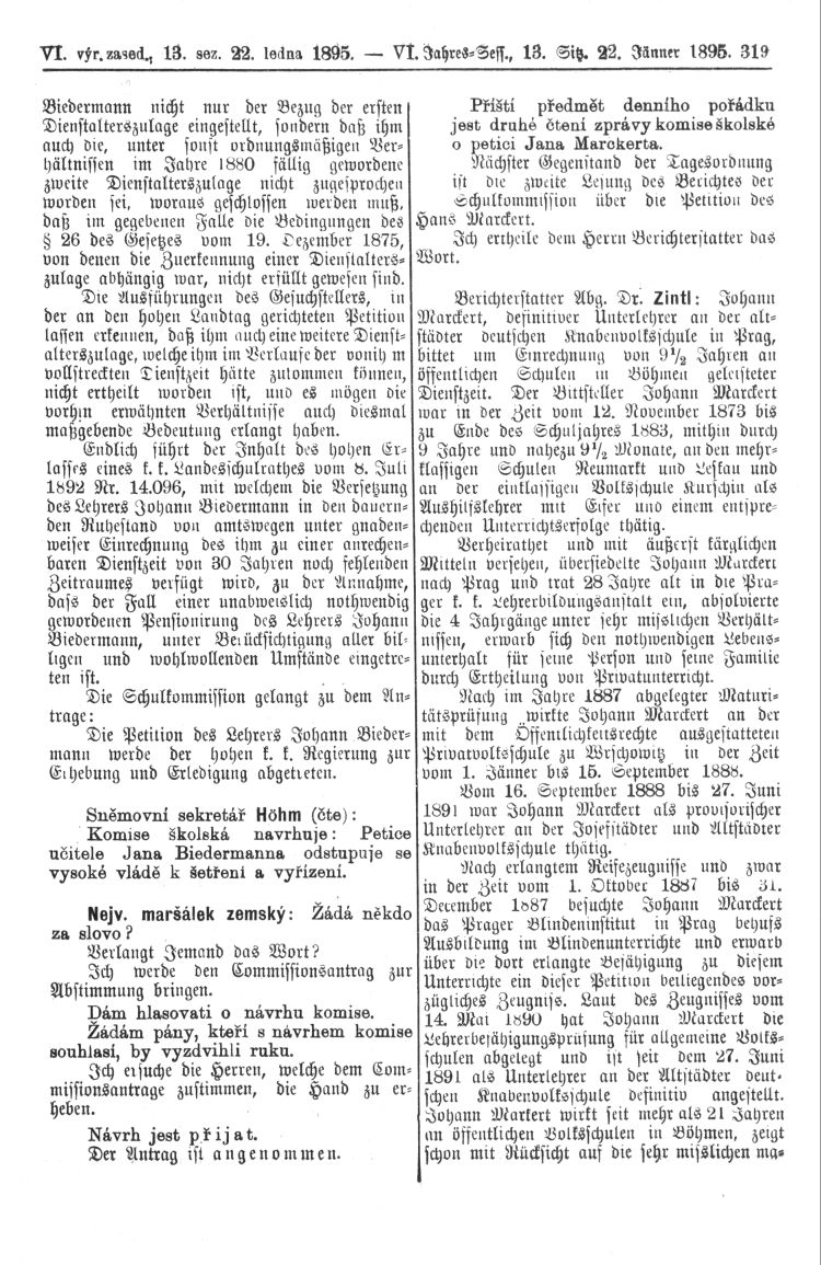 Nacházíte se: Digitální knihovna › Sněm království Českého 1889-1895 › 6. zasedání › Stenoprotokoly › 13. schůze › Úterý 22. ledna 1895