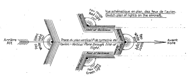 Dans ce réglement, le mot "visible", appliqué aux feux, signifie: visible par nuit sombre et atmosphére transparente. Les angles de visibilité dont il est question ciaprès et qui sont figurés sur le croquis ci-dessous, supposent l'aéronef dans sa position normale de vol rectiligne et horizontal.