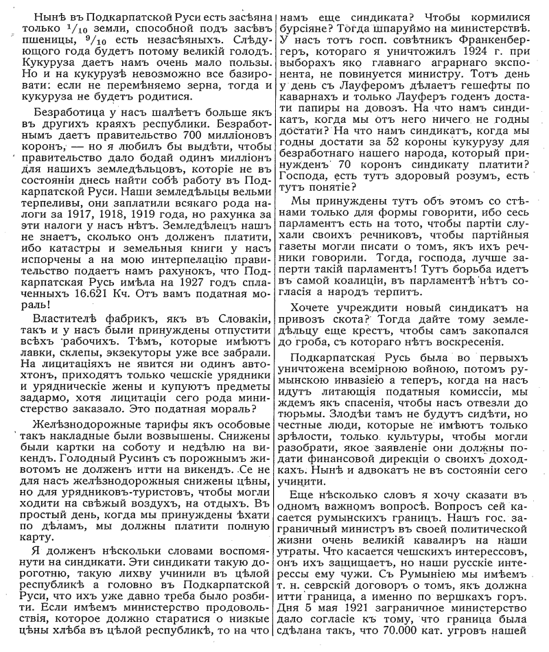 Dagegen muß ich mir hier verwahren, daß auch hier wieder die Praxis in die Tat umgesetzt wird, die Verlängerung des § 28 auf den Tisch des Hauses zu werfen. Ich habe schon am 16. Dezember 1930 und am 17. Dezember 1931 ausführlich gegen die Verlängerung dieses Paragraphen Stellung genommen. Heuer hat sich der Termin um ein paar Tage hinausgeschoben und es soll morgen oder heute darüber abgestimmt werden. In unserem Verhalten gegen diesen Paragraphen gegenüber dem Vorjahr hat sich nichts geändert. Die Karten, die uns inzwischen ausgeteilt wurden, zeigen, wohin die ganze Maßnahme führen soll: zur vollständigen Monopolisierung und Ausschaltung jeder anderen Betriebsform. Wir wissen, daß die Monopole auch vom Staate ausgebaut werden, um über die Verteilung der Arbeitsplätze uneingeschränkt verfügen zu können. Unsere diesbezüglichen Befürchtungen haben sich überall als wahr erwiesen und werden ganz besonders verstärkt durch ein zweites Gesetz, das heute nachts im Senat beschlossen und heute oder morgen hier abgestimmt werden soll, das eine Art Erweiterung der Autarkie im Bezug auf neue Arbeitsplätze für die èechische Bevölkerung darstellt. Ich meine das Gesetz über die Autobusse. Das Gesetz über die Autobusunternehmungen, die man über kurz oder lang vollständig verstaatlichen will, bedeutet eine weitere Ausschließung der Deutschen vom Arbeitsplatze und ist ein wesentliches Zeichen weiterer Einschränkung unserer wirtschaftlichen und politischen Freiheit.