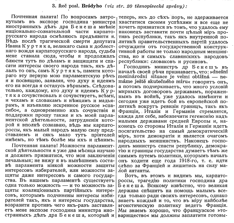 Diese feststehende Tatsache hat auch Herr Präsident Masaryk in seinem Werke "Das neue Europa" voll und ganz anerkannt.