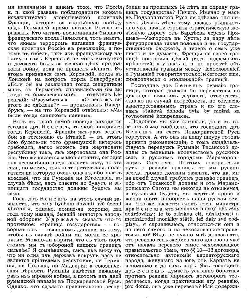 Es ist vom Standpunkt des èechoslovakischen Außenministers begreiflich, daß er die politischen Machtverhältnisse, wie sie in den Friedensverträgen festgelegt wurden, als unabänderlich bezeichnet.