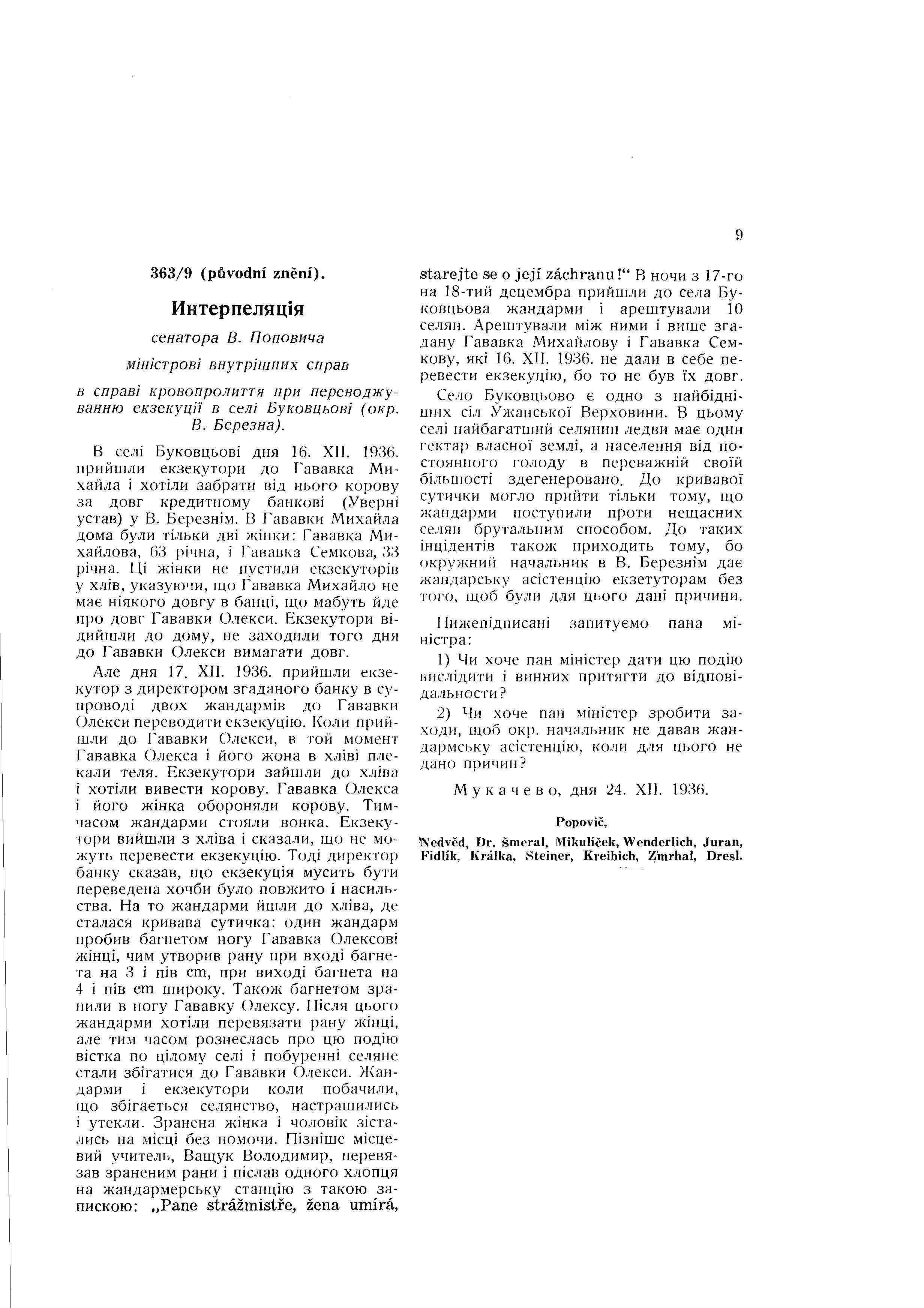 o krveprolití při provádění exekuce v obci Bukovcové (okres Velký Berezný).
