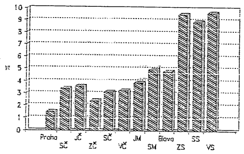 Míra nezaměstnanosti v regionech ČSFR k 31. 8. 1991