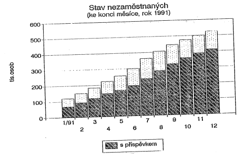 c) S hospodářským poklesem byl spojen i růst nezaměstnanosti. Měsíční přírůstky nezaměstnanosti se v průběhu roku zpomalovaly.