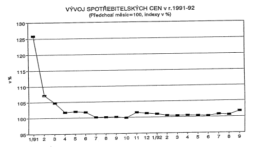1) Pozitivní vliv na cenový vývoj v celé ČSFR měla agregátní rovnováha mezi nabídkou zboží a služeb a poptávkou po nich a stabilita cen zahraničních vstupů. Dílčí úpravy dosud regulovaných cen (např. nájemné, vodné, stočné) významněji neovlivnily hladinu spotřebitelských cen. Cenové relace se postupně stabilizují, působí zde nejen poptávkové bariéry obyvatelstva a rozvíjející se vějíř sortimentu nabídky, ale i rozšiřující se konkurence mezi maloobchodními prodejci zboží a ve službách.