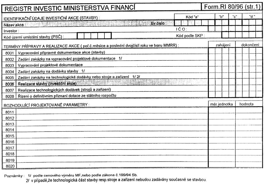 REGISTR INVESTIC MINISTERSTVA