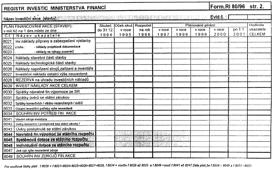 r.1996 - financování investičních
