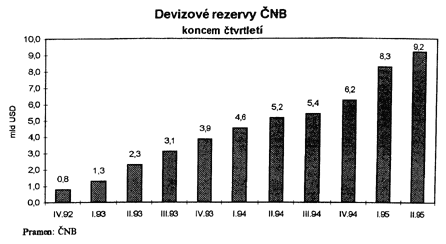 konci roku 1994 o 3,0 mld USD). Kurz české koruny