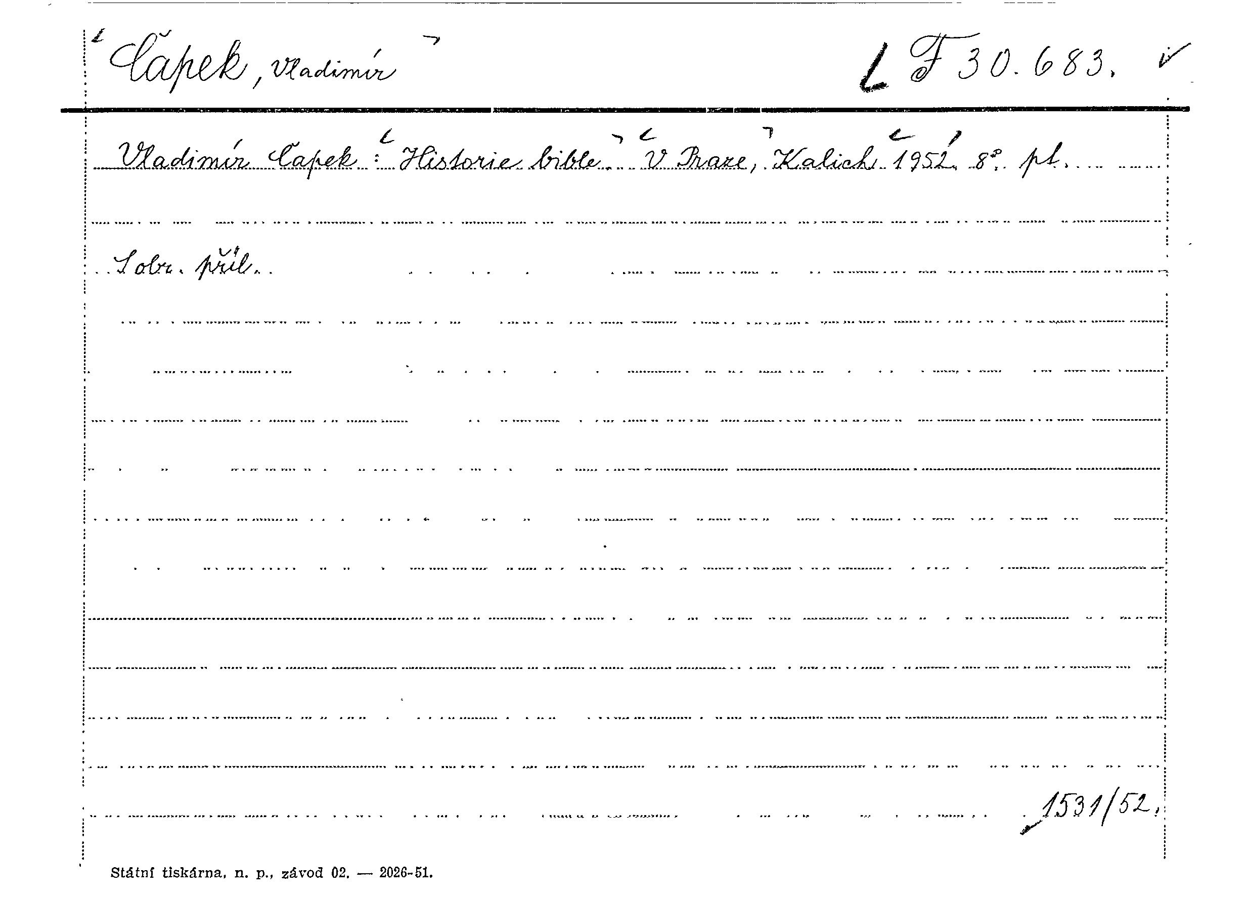Jmenný lístkový katalog do roku 1968