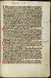 300r - 403v [Rukou 17. století] Liber distinctionum. [Text] Tyto knihy sú knihy vikpildové práva sasíckého řádu, jakož Meydburk požívá a hallišené, jenž své svolení práva tu berú, a ty z Lipska v Halli a k tomu mnoho měst v tom markrabství v Míšni, jenž své svolení v Halli a v Lipsku berú ... Prologus. Svatý Řehoř i jiní světí doktorové v božských knihách a v právech píší nám o té svaté svatosti svatého manželstva, že žádné urozenie není lepší ku vysokému kněžstvu, v němž se sám buoh dal jest ... [f. 300v] Capitolum primum. Buoh ostavil dva meče ku obraně na zemi svatého křesťanstva, jakož nám písmo píše, papežovi duchovní a císařovi světský. I jest císař dlužen na určené časy, když papež chce vsésti na svój bílý kuoň ... x ... Capitolum 27 distinccio prima. ... ani služby ani žádného koli práva, než to povolí topl, to jest zemského lidu obec. Tuto se počínají knihy sedmé o věrné ruce.
