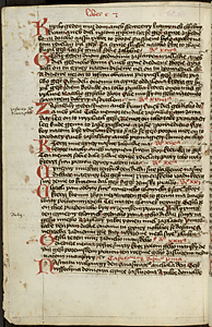300r - 403v [Rukou 17. století] Liber distinctionum. [Text] Tyto knihy sú knihy vikpildové práva sasíckého řádu, jakož Meydburk požívá a hallišené, jenž své svolení práva tu berú, a ty z Lipska v Halli a k tomu mnoho měst v tom markrabství v Míšni, jenž své svolení v Halli a v Lipsku berú ... Prologus. Svatý Řehoř i jiní světí doktorové v božských knihách a v právech píší nám o té svaté svatosti svatého manželstva, že žádné urozenie není lepší ku vysokému kněžstvu, v němž se sám buoh dal jest ... [f. 300v] Capitolum primum. Buoh ostavil dva meče ku obraně na zemi svatého křesťanstva, jakož nám písmo píše, papežovi duchovní a císařovi světský. I jest císař dlužen na určené časy, když papež chce vsésti na svój bílý kuoň ... x ... Capitolum 27 distinccio prima. ... ani služby ani žádného koli práva, než to povolí topl, to jest zemského lidu obec. Tuto se počínají knihy sedmé o věrné ruce.