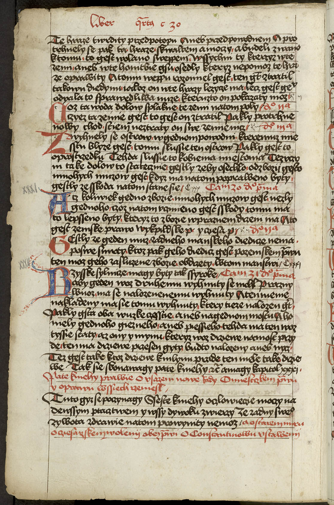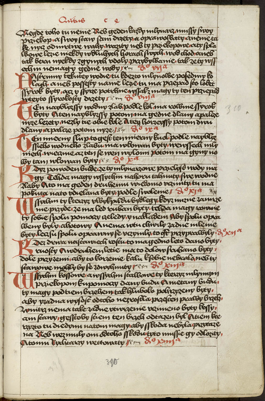 300r - 403v [Rukou 17. století] Liber distinctionum. [Text] Tyto knihy sú knihy vikpildové práva sasíckého řádu, jakož Meydburk požívá a hallišené, jenž své svolení práva tu berú, a ty z Lipska v Halli a k tomu mnoho měst v tom markrabství v Míšni, jenž své svolení v Halli a v Lipsku berú ... Prologus. Svatý Řehoř i jiní světí doktorové v božských knihách a v právech píší nám o té svaté svatosti svatého manželstva, že žádné urozenie není lepší ku vysokému kněžstvu, v němž se sám buoh dal jest ... [f. 300v] Capitolum primum. Buoh ostavil dva meče ku obraně na zemi svatého křesťanstva, jakož nám písmo píše, papežovi duchovní a císařovi světský. I jest císař dlužen na určené časy, když papež chce vsésti na svój bílý kuoň ... x ... Capitolum 27 distinccio prima. ... ani služby ani žádného koli práva, než to povolí topl, to jest zemského lidu obec. Tuto se počínají knihy sedmé o věrné ruce.