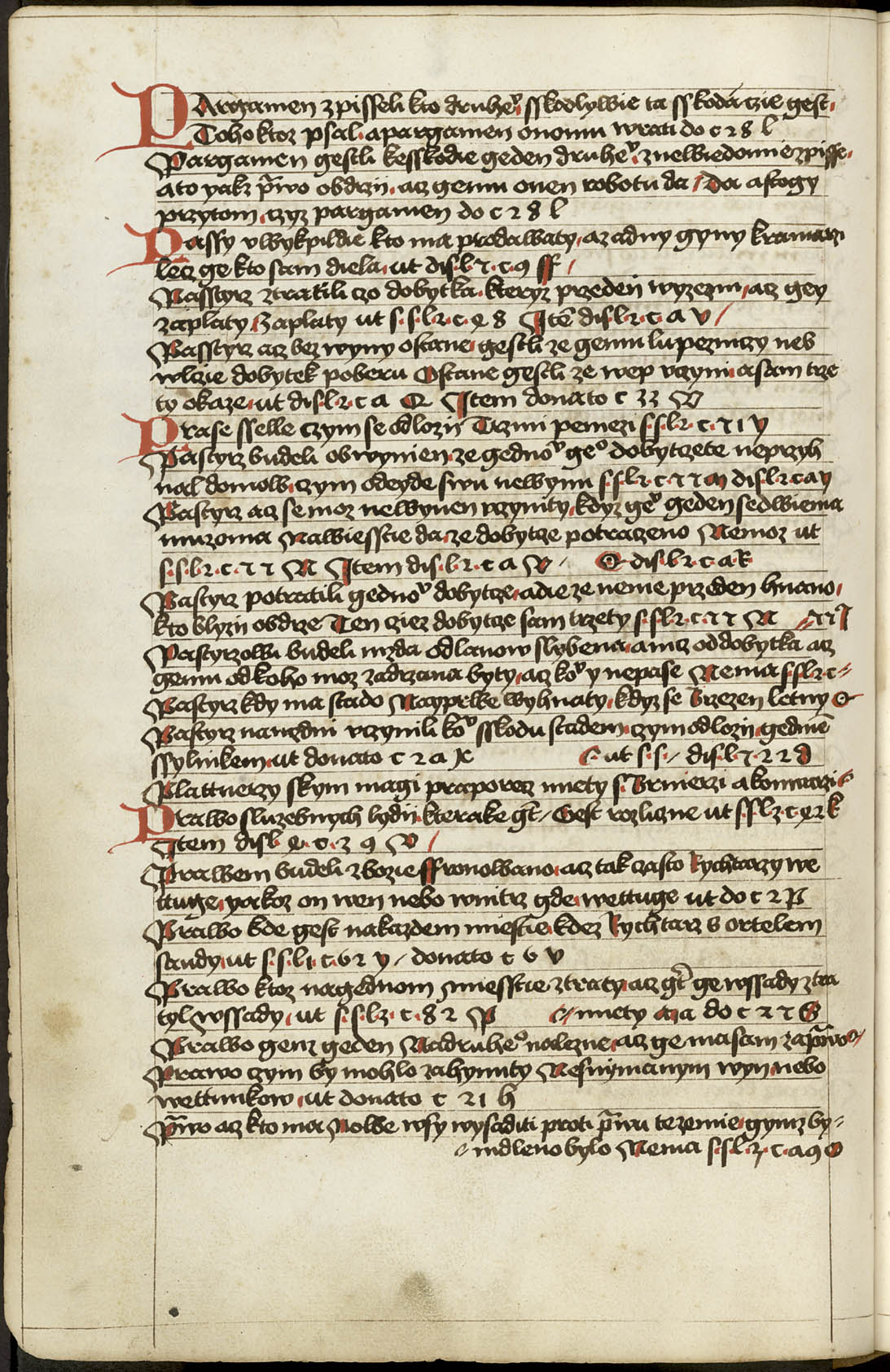 Ir - 95v Abatyše k vojštytu volena ať má manství přijieti, dovod toho v zrcadle sasíckém jinak Speculo Saxonico libro tercio capitulo 19 a v jiných knihách distinccionum libro VIo capitulo II praví, že má přijieti. ... x ... Zrušenie smlúvy před právem učiněné, čím má odloženo býti. Pro ránu ruku, pro vraždu hrdlem ut do. c. z. l. de S. Zrušenie zprávy hledaj napřed de Z. Et sic est finis huius operis per me Jacobum Kožený de Krbova anno domini M CCCC LXIX currente, feria sexta post festum beate Lucie virginis [1469]. Hoc opus presens laboriose utilitate pro communi consumavi.