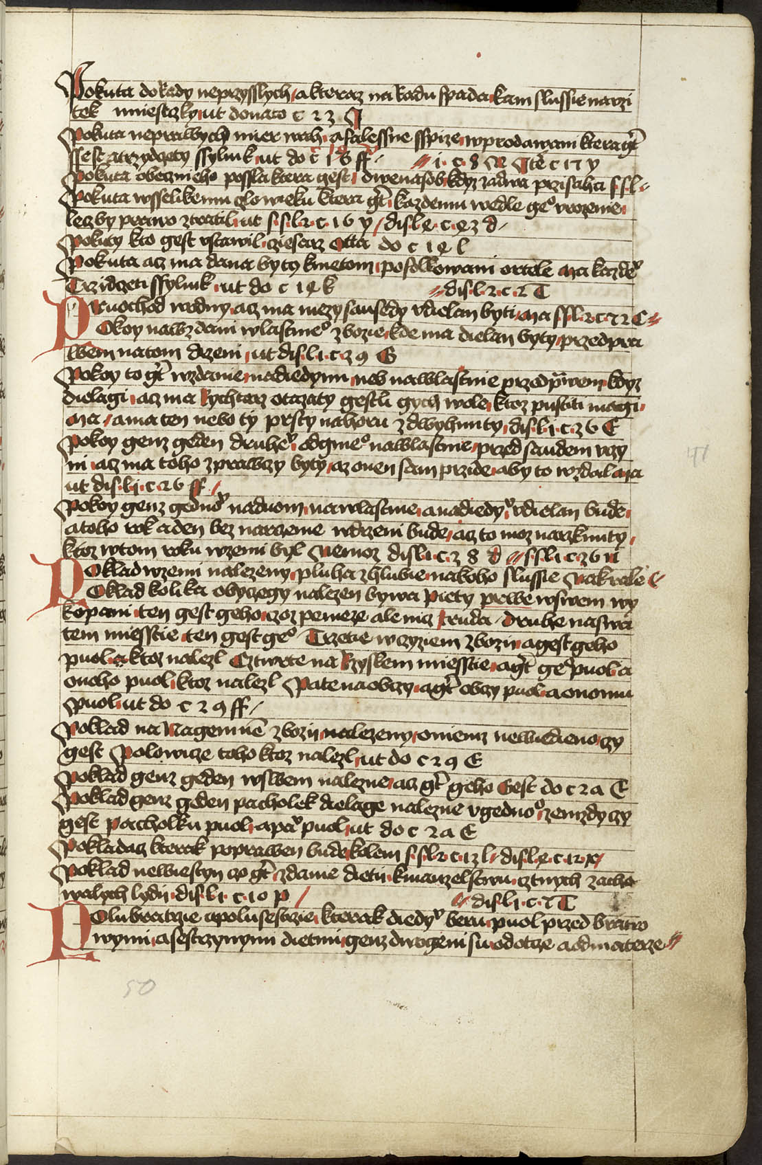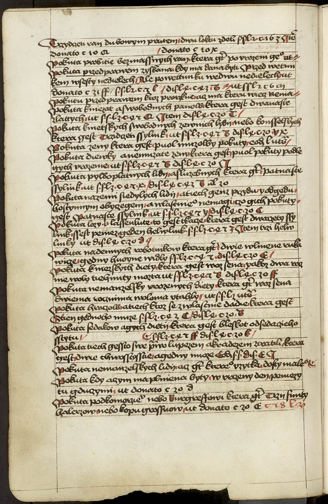 Ir - 95v Abatyše k vojštytu volena ať má manství přijieti, dovod toho v zrcadle sasíckém jinak Speculo Saxonico libro tercio capitulo 19 a v jiných knihách distinccionum libro VIo capitulo II praví, že má přijieti. ... x ... Zrušenie smlúvy před právem učiněné, čím má odloženo býti. Pro ránu ruku, pro vraždu hrdlem ut do. c. z. l. de S. Zrušenie zprávy hledaj napřed de Z. Et sic est finis huius operis per me Jacobum Kožený de Krbova anno domini M CCCC LXIX currente, feria sexta post festum beate Lucie virginis [1469]. Hoc opus presens laboriose utilitate pro communi consumavi.
