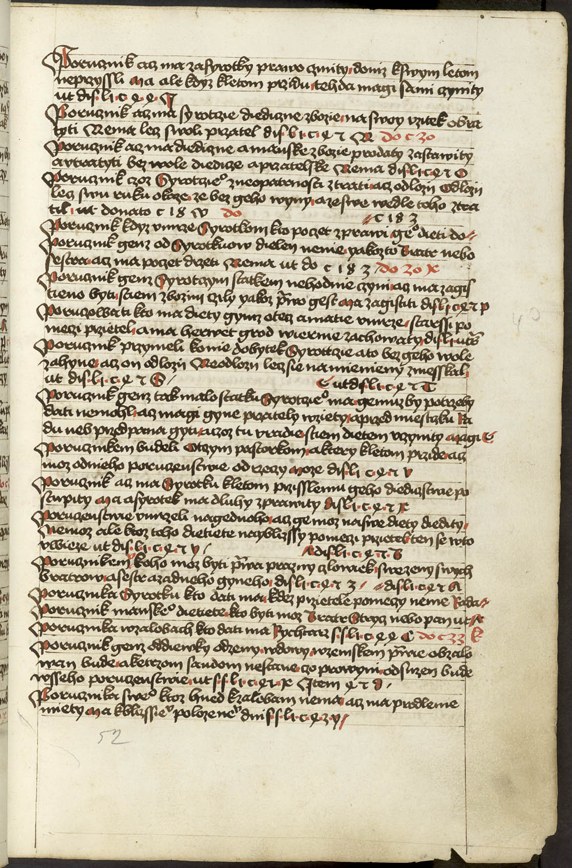 Ir - 95v Abatyše k vojštytu volena ať má manství přijieti, dovod toho v zrcadle sasíckém jinak Speculo Saxonico libro tercio capitulo 19 a v jiných knihách distinccionum libro VIo capitulo II praví, že má přijieti. ... x ... Zrušenie smlúvy před právem učiněné, čím má odloženo býti. Pro ránu ruku, pro vraždu hrdlem ut do. c. z. l. de S. Zrušenie zprávy hledaj napřed de Z. Et sic est finis huius operis per me Jacobum Kožený de Krbova anno domini M CCCC LXIX currente, feria sexta post festum beate Lucie virginis [1469]. Hoc opus presens laboriose utilitate pro communi consumavi.