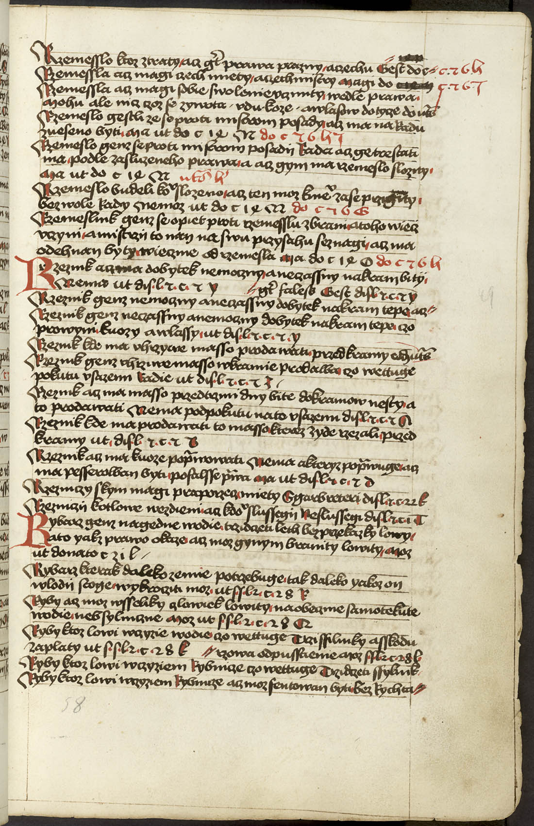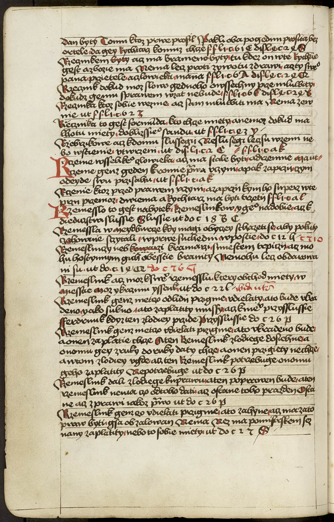 Ir - 95v Abatyše k vojštytu volena ať má manství přijieti, dovod toho v zrcadle sasíckém jinak Speculo Saxonico libro tercio capitulo 19 a v jiných knihách distinccionum libro VIo capitulo II praví, že má přijieti. ... x ... Zrušenie smlúvy před právem učiněné, čím má odloženo býti. Pro ránu ruku, pro vraždu hrdlem ut do. c. z. l. de S. Zrušenie zprávy hledaj napřed de Z. Et sic est finis huius operis per me Jacobum Kožený de Krbova anno domini M CCCC LXIX currente, feria sexta post festum beate Lucie virginis [1469]. Hoc opus presens laboriose utilitate pro communi consumavi.