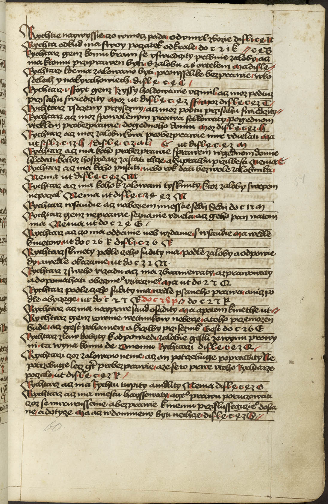 Ir - 95v Abatyše k vojštytu volena ať má manství přijieti, dovod toho v zrcadle sasíckém jinak Speculo Saxonico libro tercio capitulo 19 a v jiných knihách distinccionum libro VIo capitulo II praví, že má přijieti. ... x ... Zrušenie smlúvy před právem učiněné, čím má odloženo býti. Pro ránu ruku, pro vraždu hrdlem ut do. c. z. l. de S. Zrušenie zprávy hledaj napřed de Z. Et sic est finis huius operis per me Jacobum Kožený de Krbova anno domini M CCCC LXIX currente, feria sexta post festum beate Lucie virginis [1469]. Hoc opus presens laboriose utilitate pro communi consumavi.