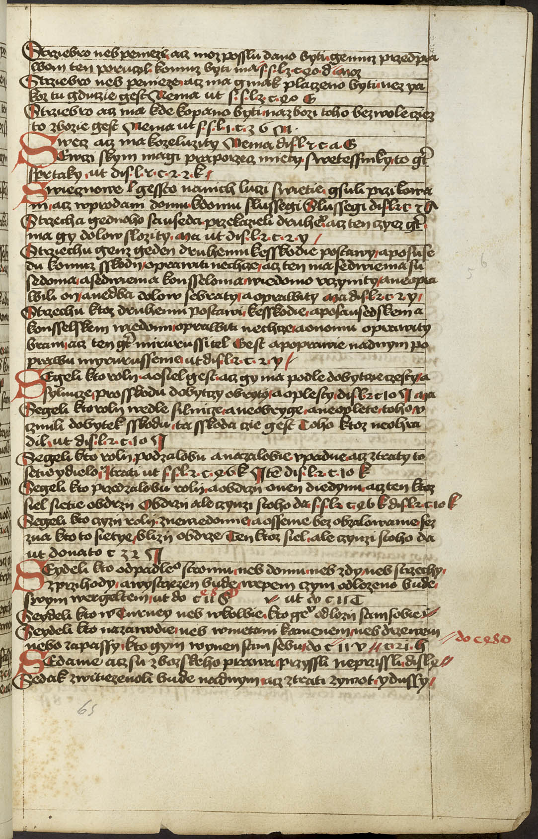 Ir - 95v Abatyše k vojštytu volena ať má manství přijieti, dovod toho v zrcadle sasíckém jinak Speculo Saxonico libro tercio capitulo 19 a v jiných knihách distinccionum libro VIo capitulo II praví, že má přijieti. ... x ... Zrušenie smlúvy před právem učiněné, čím má odloženo býti. Pro ránu ruku, pro vraždu hrdlem ut do. c. z. l. de S. Zrušenie zprávy hledaj napřed de Z. Et sic est finis huius operis per me Jacobum Kožený de Krbova anno domini M CCCC LXIX currente, feria sexta post festum beate Lucie virginis [1469]. Hoc opus presens laboriose utilitate pro communi consumavi.