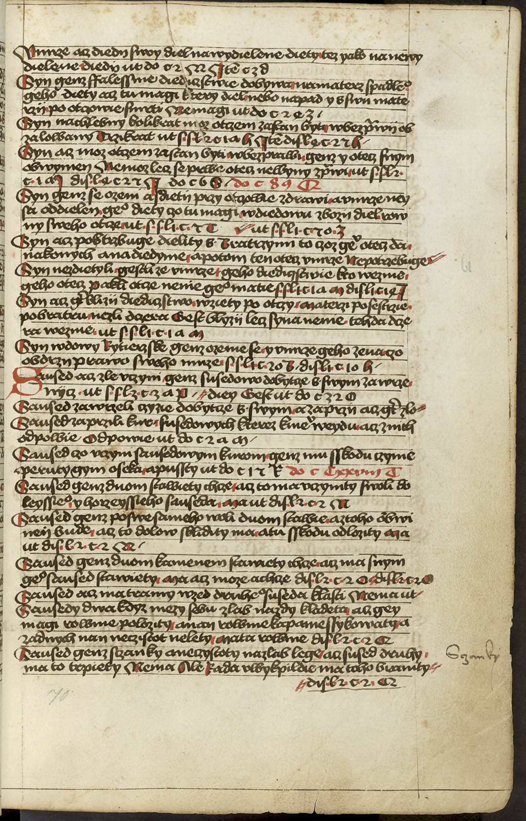 Ir - 95v Abatyše k vojštytu volena ať má manství přijieti, dovod toho v zrcadle sasíckém jinak Speculo Saxonico libro tercio capitulo 19 a v jiných knihách distinccionum libro VIo capitulo II praví, že má přijieti. ... x ... Zrušenie smlúvy před právem učiněné, čím má odloženo býti. Pro ránu ruku, pro vraždu hrdlem ut do. c. z. l. de S. Zrušenie zprávy hledaj napřed de Z. Et sic est finis huius operis per me Jacobum Kožený de Krbova anno domini M CCCC LXIX currente, feria sexta post festum beate Lucie virginis [1469]. Hoc opus presens laboriose utilitate pro communi consumavi.
