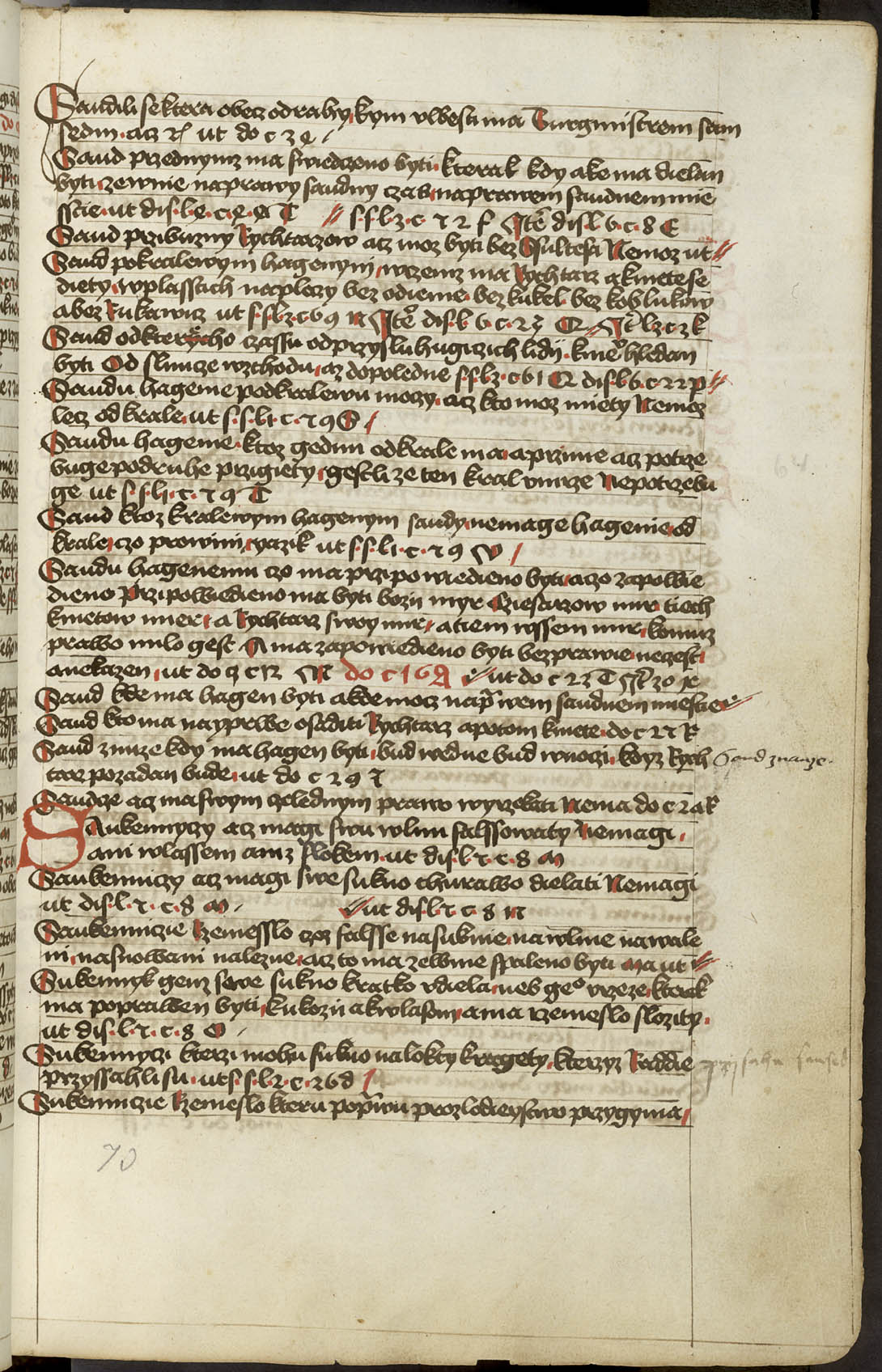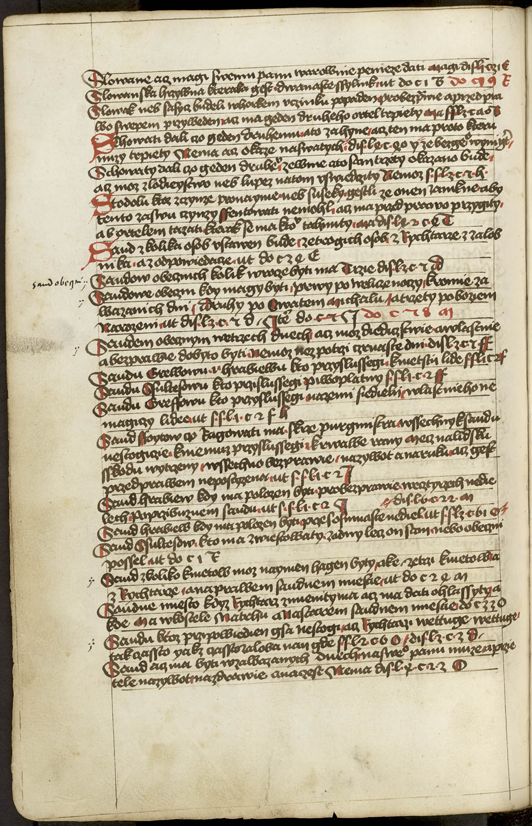 Ir - 95v Abatyše k vojštytu volena ať má manství přijieti, dovod toho v zrcadle sasíckém jinak Speculo Saxonico libro tercio capitulo 19 a v jiných knihách distinccionum libro VIo capitulo II praví, že má přijieti. ... x ... Zrušenie smlúvy před právem učiněné, čím má odloženo býti. Pro ránu ruku, pro vraždu hrdlem ut do. c. z. l. de S. Zrušenie zprávy hledaj napřed de Z. Et sic est finis huius operis per me Jacobum Kožený de Krbova anno domini M CCCC LXIX currente, feria sexta post festum beate Lucie virginis [1469]. Hoc opus presens laboriose utilitate pro communi consumavi.