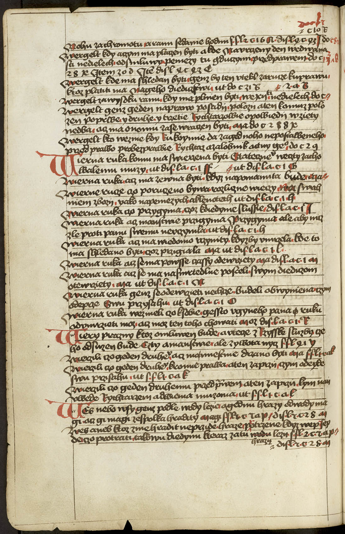 Ir - 95v Abatyše k vojštytu volena ať má manství přijieti, dovod toho v zrcadle sasíckém jinak Speculo Saxonico libro tercio capitulo 19 a v jiných knihách distinccionum libro VIo capitulo II praví, že má přijieti. ... x ... Zrušenie smlúvy před právem učiněné, čím má odloženo býti. Pro ránu ruku, pro vraždu hrdlem ut do. c. z. l. de S. Zrušenie zprávy hledaj napřed de Z. Et sic est finis huius operis per me Jacobum Kožený de Krbova anno domini M CCCC LXIX currente, feria sexta post festum beate Lucie virginis [1469]. Hoc opus presens laboriose utilitate pro communi consumavi.