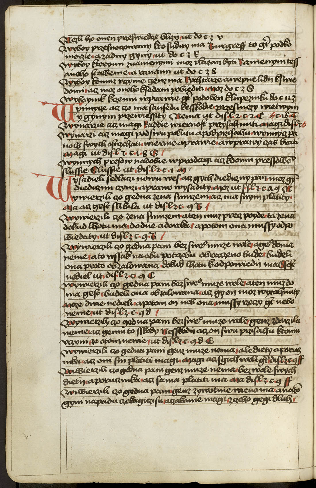 Ir - 95v Abatyše k vojštytu volena ať má manství přijieti, dovod toho v zrcadle sasíckém jinak Speculo Saxonico libro tercio capitulo 19 a v jiných knihách distinccionum libro VIo capitulo II praví, že má přijieti. ... x ... Zrušenie smlúvy před právem učiněné, čím má odloženo býti. Pro ránu ruku, pro vraždu hrdlem ut do. c. z. l. de S. Zrušenie zprávy hledaj napřed de Z. Et sic est finis huius operis per me Jacobum Kožený de Krbova anno domini M CCCC LXIX currente, feria sexta post festum beate Lucie virginis [1469]. Hoc opus presens laboriose utilitate pro communi consumavi.
